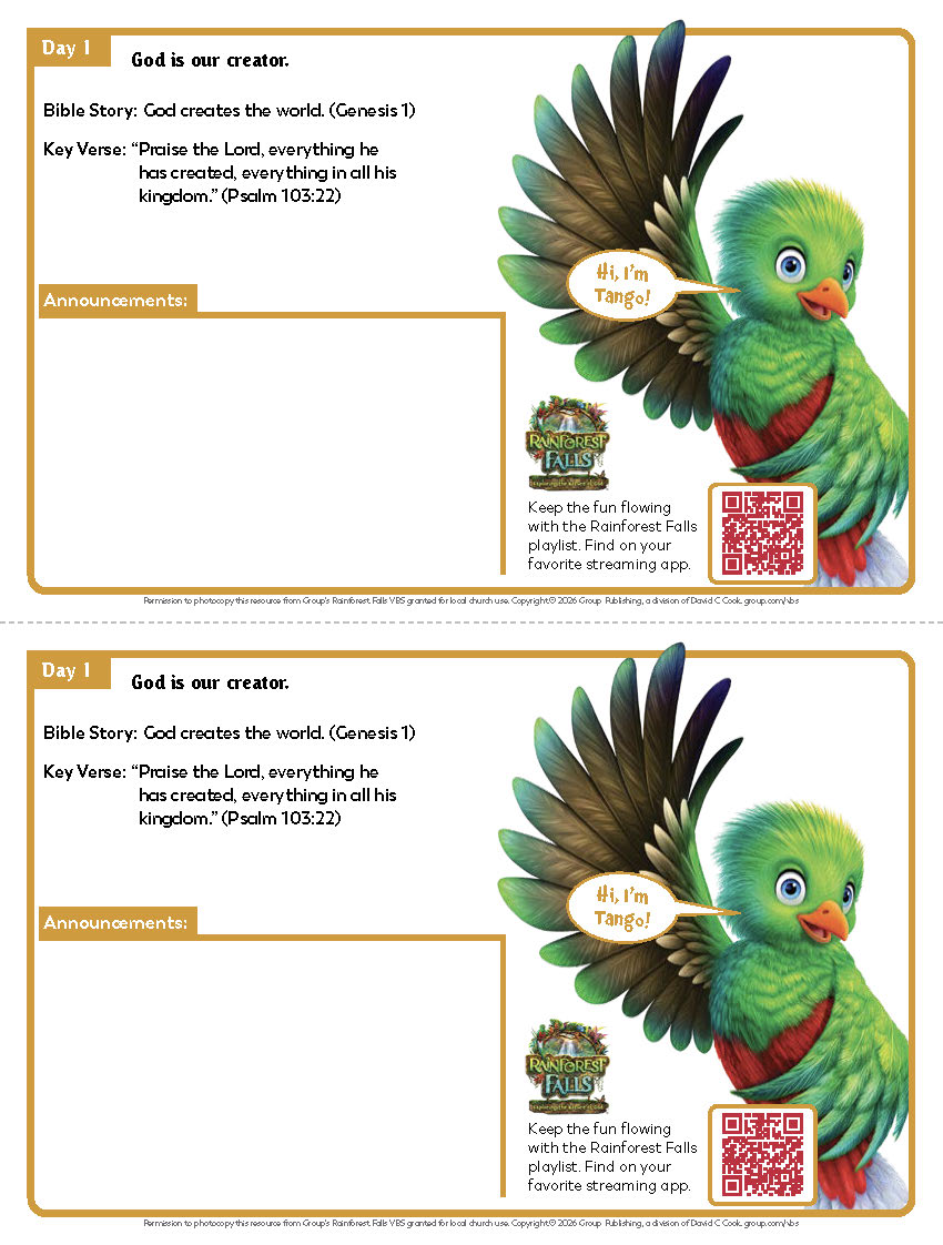 For noncommercial use by purchasers of Rainforest Falls VBS. Please consult the permissions form on your Clip Art CD or the Digital Download Center for more information.